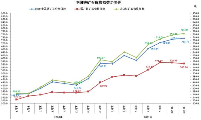 三、中国铁矿石价格指数(CIOPI)--6月2日