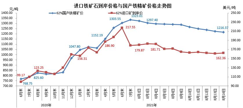 2021年8月16日中国铁矿石价格指数