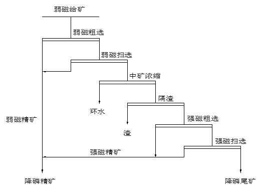 (3)弱磁-浓缩-集中隔渣-水平磁场脉动高梯度强磁粗选-垂直磁场脉动高梯度强磁扫选的高效梯级铁矿物回收工艺;