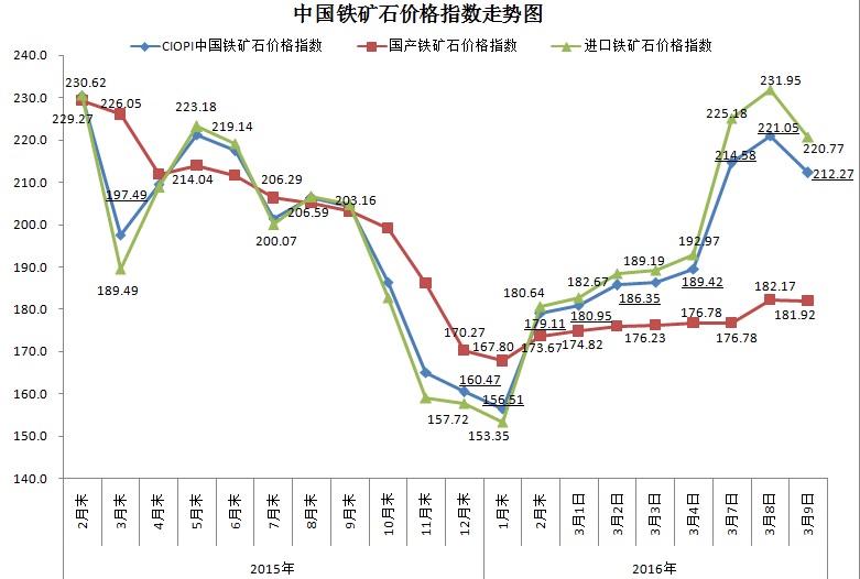 2016年3月9日中国铁矿石价格指数