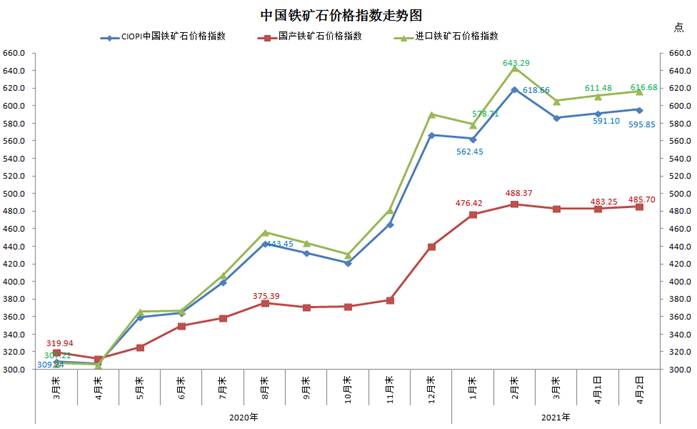 2021年4月2日中国铁矿石价格指数