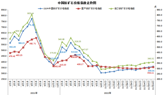 三、中国铁矿石价格指数(CIOPI)--11月16日
