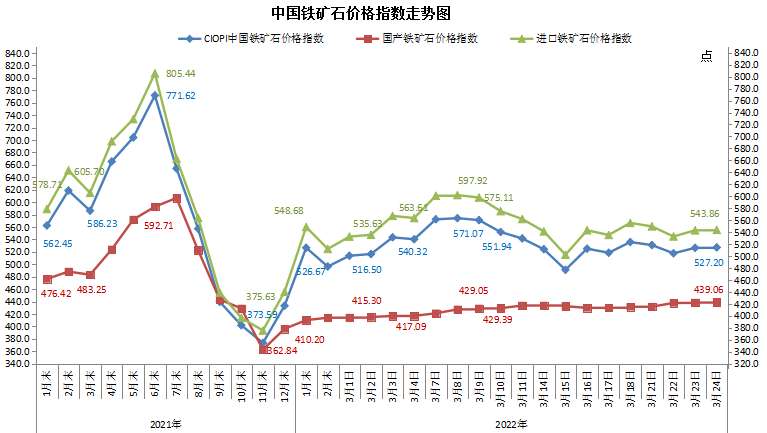 2022年3月24日中国铁矿石价格指数