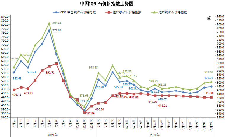 三、中国铁矿石价格指数(CIOPI)--5月23日
