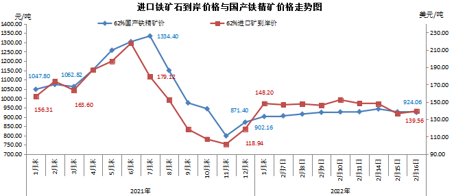 2022年2月16日中国铁矿石价格指数