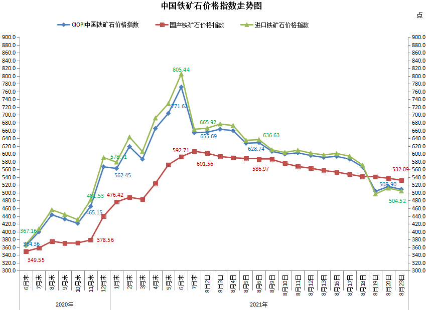 三、中国铁矿石价格指数(CIOPI)--8月23日