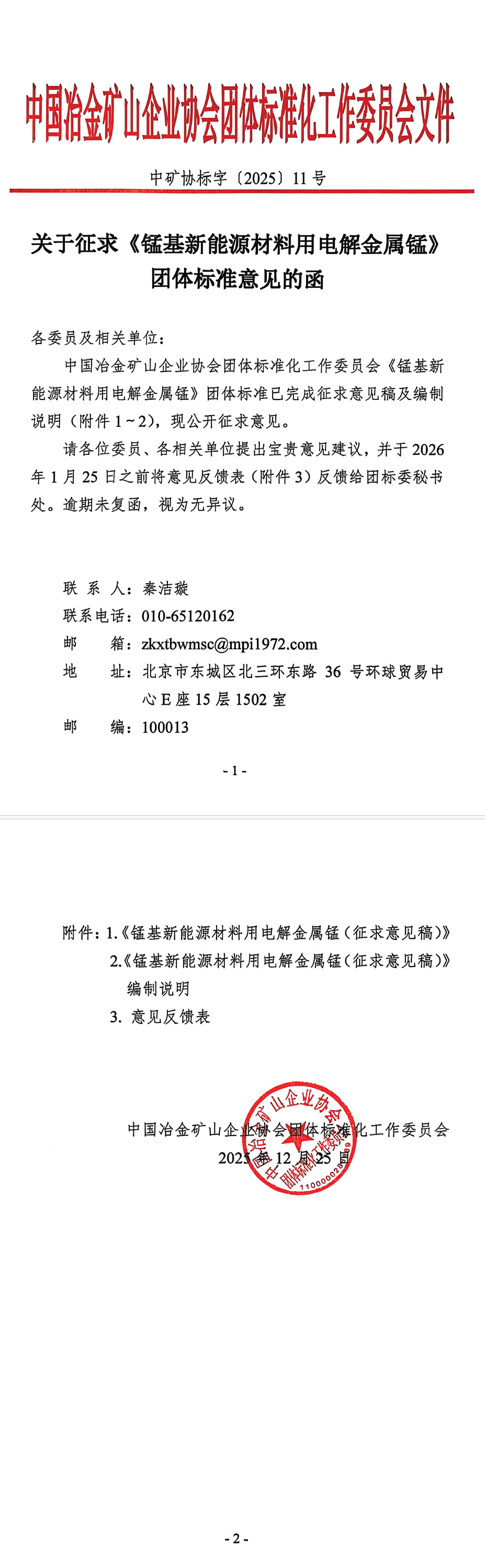 关于征求《锰基新能源材料用电解金属锰》团体标准意见的函