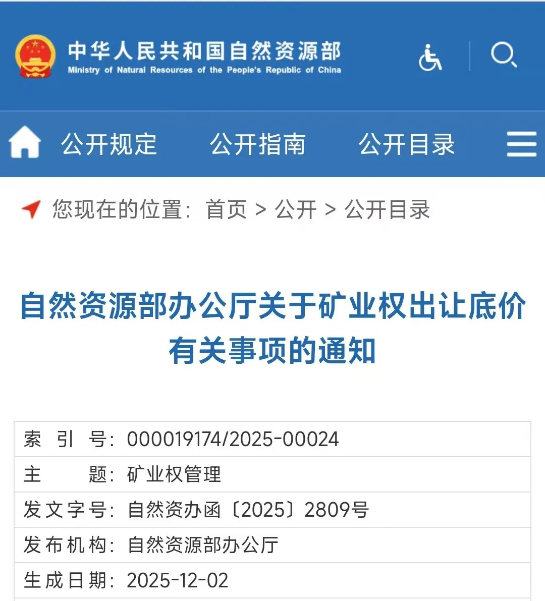为维护矿产资源国家所有者权益,确保矿业权出让交易公平、公正,根据《自然资源部关于印发矿业权出让交易规则的通知》(自然资规〔2023〕1号)等有关规定,现就确定矿业权出让底价有关事项通知如下: