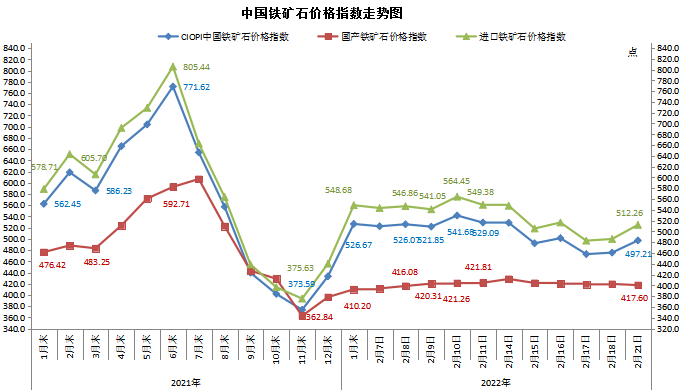 2022年2月21日中国铁矿石价格指数